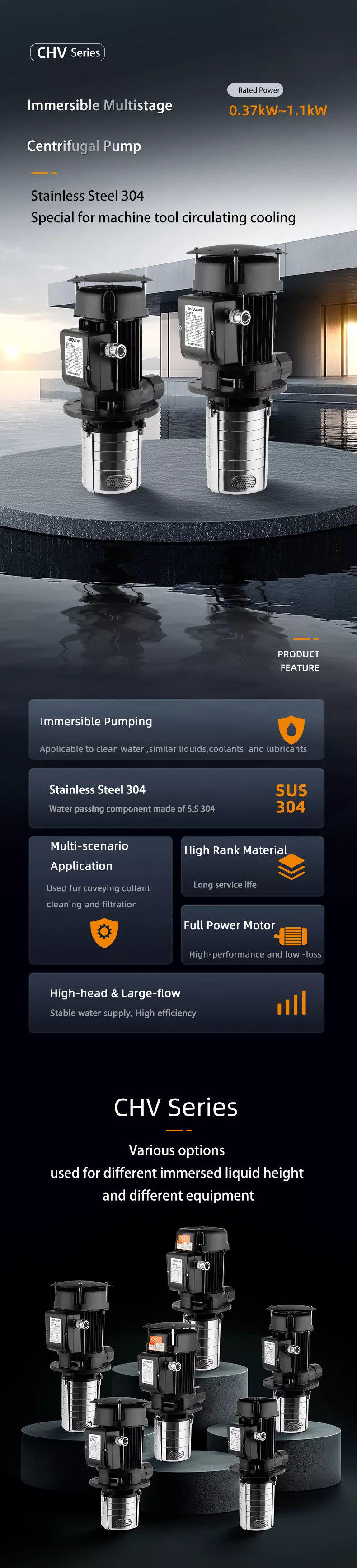 खालील CHV मालिकेचा परिचय आहे CHV इमर्सिबल मल्टीस्टेज सेंट्रीफ्यूगल पंप, विशेषत: मशीन टूल्ससाठी कूलिंग वंगण पंप करण्यासाठी आणि पंप केलेल्या द्रवामध्ये पंप स्टॅकसह टाकीच्या शीर्षस्थानी माउंट करण्यासाठी डिझाइन केलेले आहे. STAIRS SBK पंप प्रवाह, दाब आणि आवश्यक लांबी प्रदान करण्यासाठी विविध पंप आकार आणि विविध टप्प्यांसह उपलब्ध आहेत.