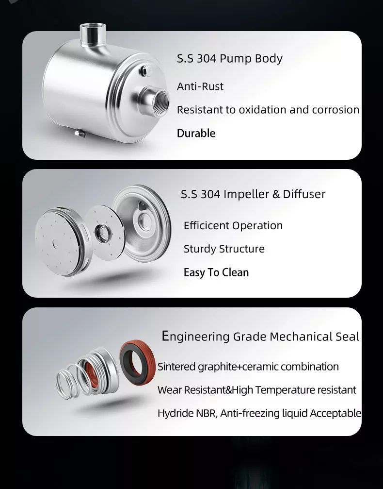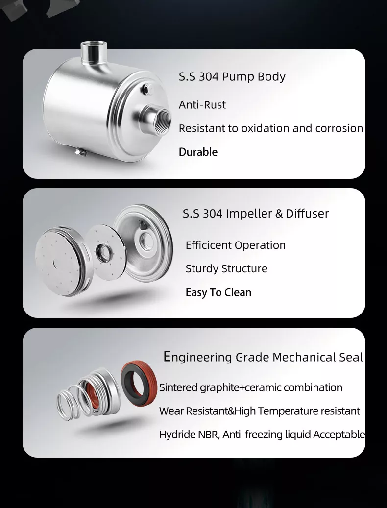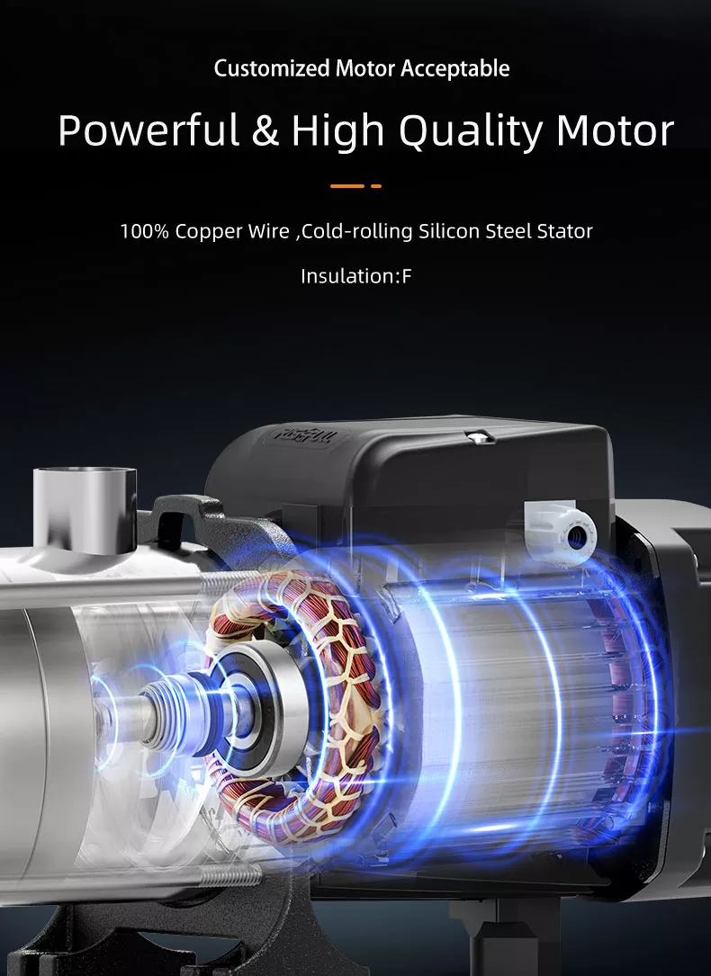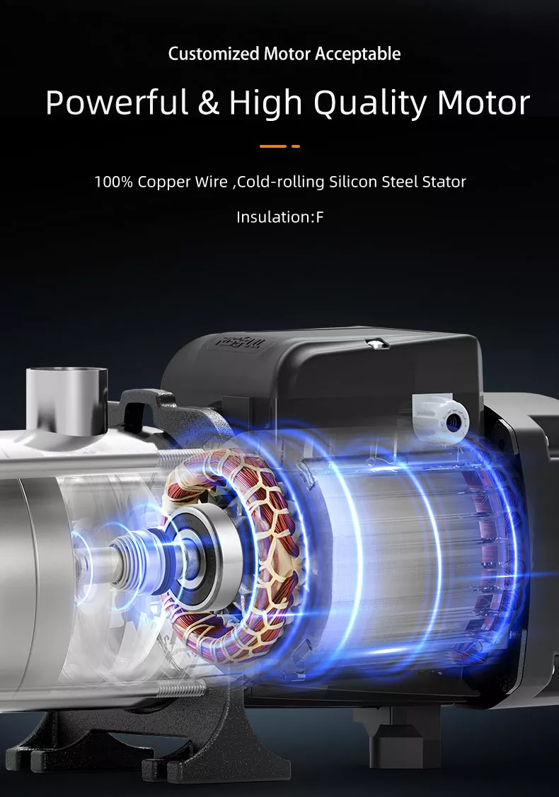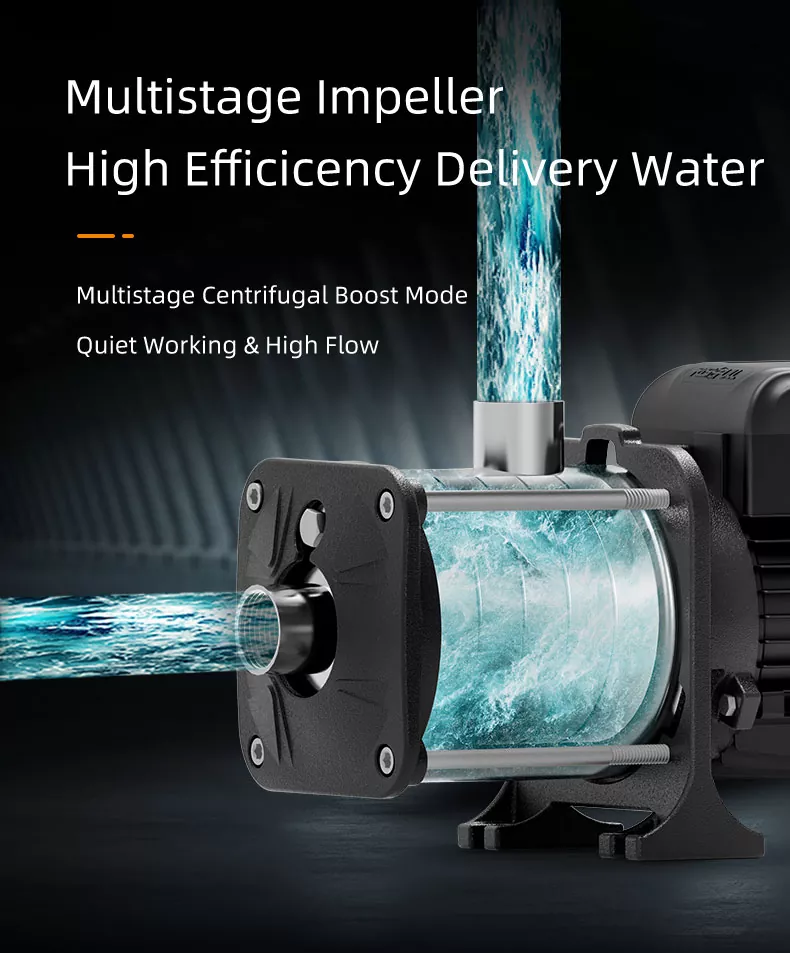 प्रत्येक टप्प्यात एकूण दबाव आउटपुटमध्ये योगदान देऊन, जेव्हा आपल्याला आवश्यक असेल तेव्हा आपण पाण्याच्या स्थिर आणि शक्तिशाली प्रवाहाचा आनंद घेऊ शकता. आपल्या बागेत पाण्याची सोय करण्यापासून ते एकाच वेळी एकाधिक शॉवर चालवण्यापर्यंत, हा पंप एक विश्वासार्ह आणि सातत्यपूर्ण कामगिरी प्रदान करतो.